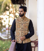Kalamkari Beige Motifs Mens Nehru Jacket