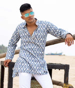 Ikat Blue Rhomboid Mens Short Kurta