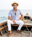 Ikat Blue-Purple Patterned Mens Short-Sleeved Shirt