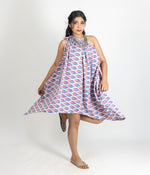 Ikat Blue & Pink Womens Off-Shoulder Dress