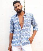 This Ikat blue diamonds mens shirt is made from Ikat Handloom Fabric created from 100% fine cotton yarn.