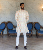 Ikat Cream Multicolor Arrows Mens Long Kurta
