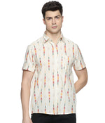 This Ikat Cream Multicolor Arrows Mens Short-Sleeved Shirt made from 100% cotton Ikat handloom fabric is stylish and vibrant. The lightweight fabric makes it perfect for everyday use.