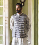 Ikat Grey-White Triangles Mens Nehru Jacket
