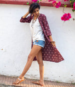 Ikat Maroon-White Striped Women's Long Jacket