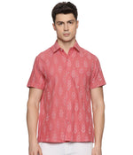 This Ikat Rust Red Patterned Mens Short-Sleeved Shirt made from 100% cotton Ikat handloom fabric is stylish and vibrant. The lightweight fabric makes it perfect for everyday use.