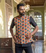 Kalamkari Orange-Black Diamonds Mens Nehru Jacket